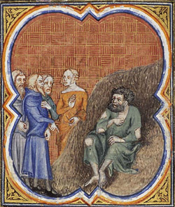 Job sur le fumier ; in Heures d'Étienne Chevalier, Jean Fouquet ; Musée Condé, Chantilly, Chantilly |