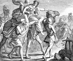Rebecca à la rencontre d’Isaac ; Julius SCHNORR von CAROSFELD ; gravure 1898 extraite de la Bible en Images
