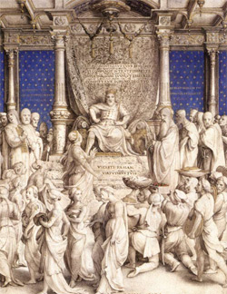 Solomon et la reine de Saba ; HOLBEIN, Hans, 1534, plume, pointe d’argent et brosse sur voile; Royal Library, Windsor Castle