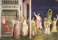Expulsion et lapidation de St Etienne; Fra ANGELICO ; 1447-49 fresque ; Cappella Niccolina, Vatican |