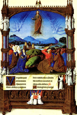 L’Ascension ; COLOMBE, Jean ; 1485-89 enluminure des "Très Riches Heures du Duc de Berry" ; Musée Condé, Chantilly