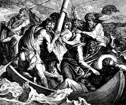 Le Christ calmant la tempête ; Gustave DORE; gravure extraite de la "Bible illustrée" |