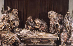 La scène de l'ensevelissement du cadavre de Jésus est particulièrement importante pour deux raisons. Il s’agit de la mort d’un homme véritable et non d’un esprit divin prenant apparence humaine, et la représentation de la mise au tombeau précède la scène du tombeau vide, signe de la résurrection.