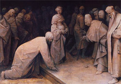 Le Christ et la femme prise en état d'adultère; Pierre BRUEGEL l'ancien; 1565 huile sur panneau; Courtauld Institute Galleries, Londres